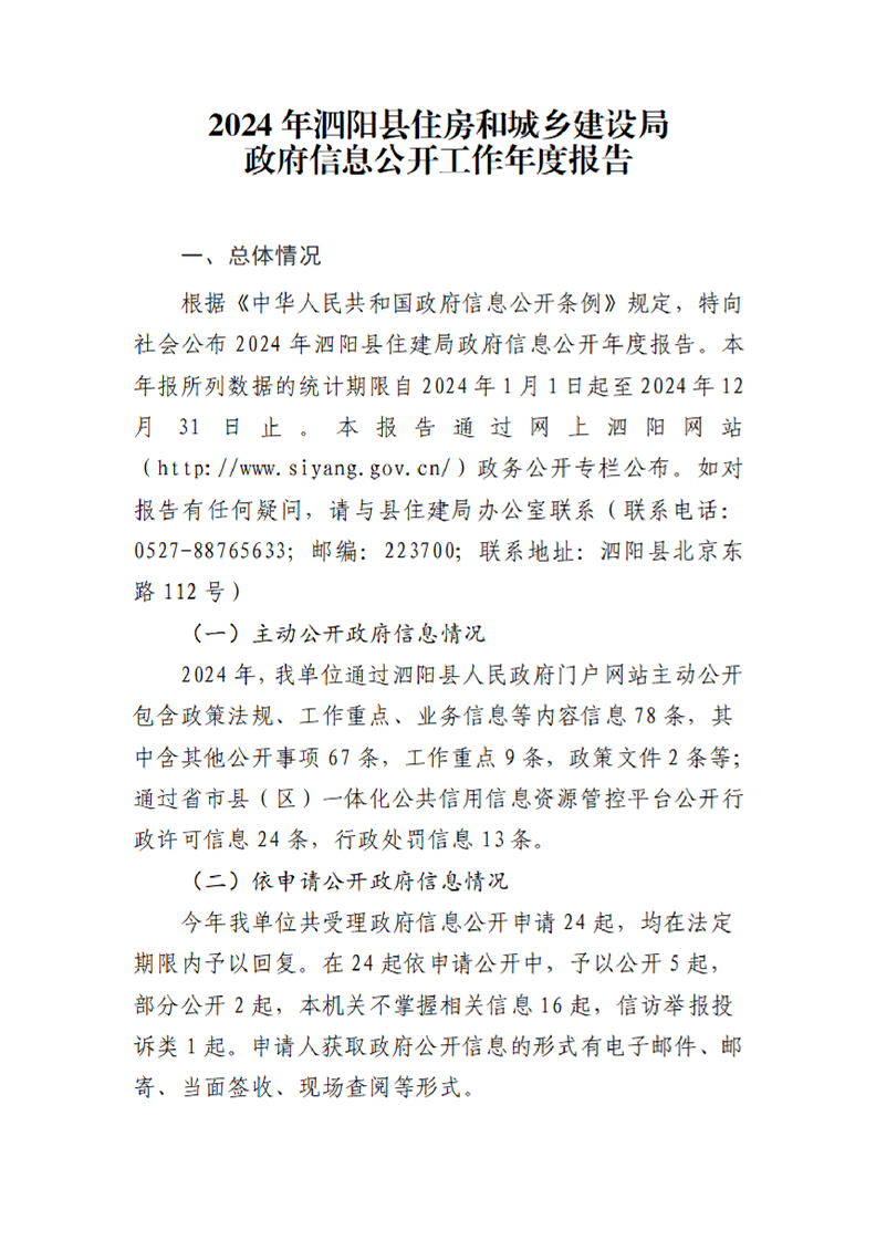 泗陽(yáng)縣住房和城鄉(xiāng)建設(shè)局2024年政府信息公開(kāi)工作年度報(bào)告